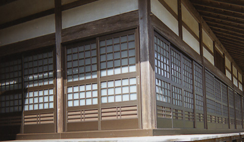 岐阜県 山県郡 龍福寺 障子名 腰付き飾り中桟付き浮格子戸